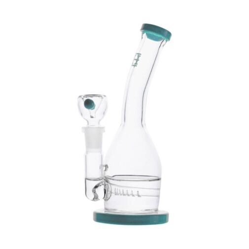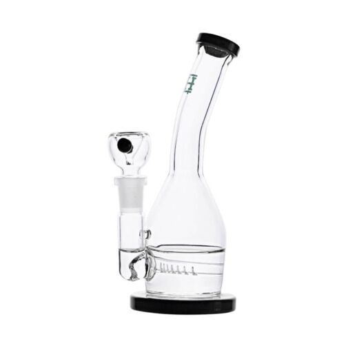 Introducing the Hemper Whistler Rig - a stunning example of both style and practicality. This remarkable piece is designed with a unique bent neck that not only looks great but also serves several important functions. The bent neck design moves the mouthpiece away from the heat, ensuring you can enjoy your smoking experience without the singe. Plus, it acts like a splash guard, keeping your experience smooth and enjoyable.
