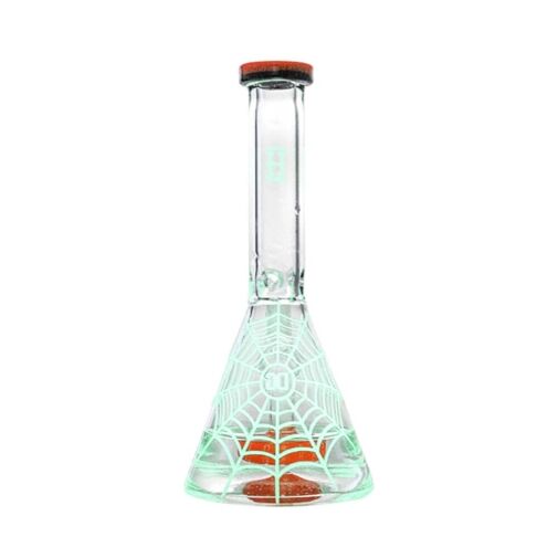 Equipped with a 14mm male herb bowl, this beaker bong features a showerhead percolator that provides ultra-smooth hits. The vibrant glow-in-the-dark accents and intricate spiderweb design add a charming yet eerie touch, perfect for showcasing during Halloween or any laid-back gathering with friends. Plus, it offers a 14mm female joint connection, ensuring compatibility with a variety of accessories. The 14mm female joint accepts standard 14mm male attachments, making swaps with bowls, bangers, or adapters quick and simple. For the brightest glow, charge glow-in-the-dark accents under direct light for a few minutes, then dim the room and enjoy.