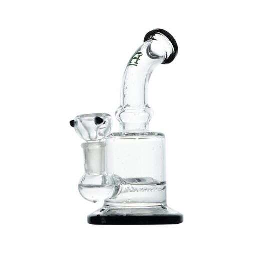 Engineered for the on-the-go enthusiast, the bent neck design not only offers an aesthetic flourish but also functions as an effective splash guard. This ensures that the mouthpiece stays comfortably away from any unwanted heat, allowing for smooth and enjoyable sessions. With a sturdy base and a well-designed shrub body style, this rig is made to endure, making it perfect for those who love to share with friends (even the clumsy ones!).