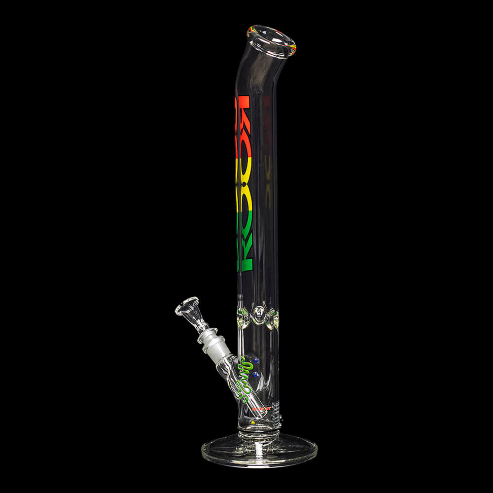Crafted from high-quality 45mm x 5mm German Schott Pyrex glass, this water pipe is not just built to impress; it is constructed to last. The vibrant Rasta ROOR logo adds a splash of color and personality to this already exceptional piece. Whether you’re a collector or just looking to elevate your smoking experience, this bong has you covered with built-in ice pinches for chilled hits that freshen up every session.