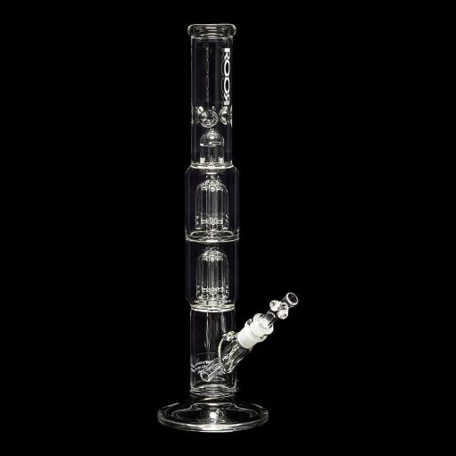 ROOR Tech | 17″ Double 4-Arm Tree Perc Straight Tube Water Pipe | Timeless Elegance and Superior Functionality