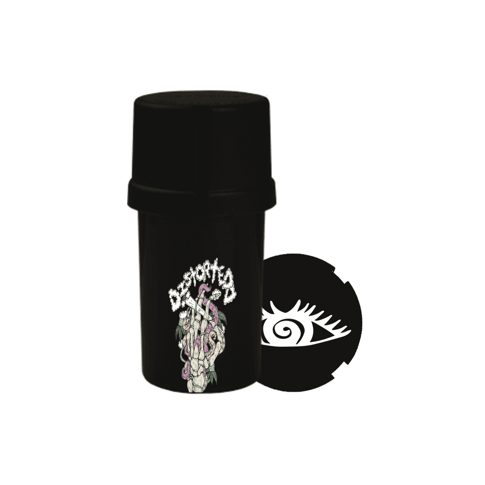 Introducing the Medtainer Storage w/ Grinder "Distortedd" in striking black—an exquisite blend of style and functionality that guarantees an excellent experience for the discerning enthusiast.