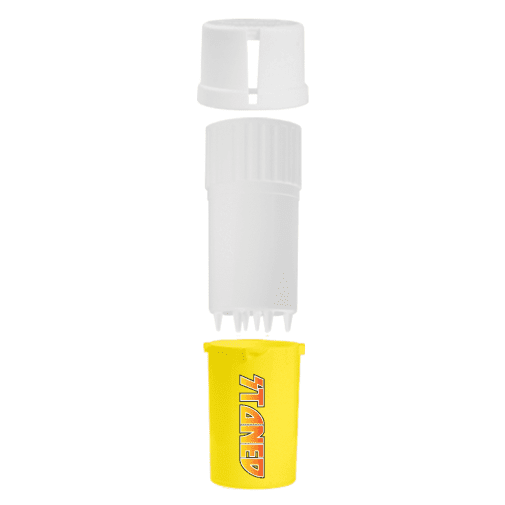 Get ready to rock your herb game with the Medtainer Storage w/ Grinder KISS of THC "Stoned" - a vibrant yellow 20 Dram herb container that not only looks cool but performs exquisitely. This innovative storage solution is a must-have for anyone who enjoys their herbs while on the move.