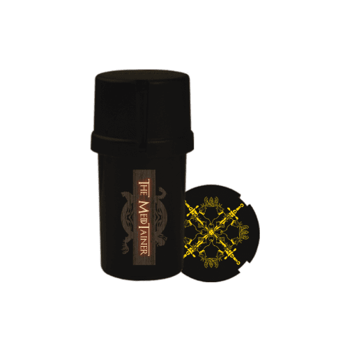 Medtainer | Storage w/ Grinder ‘Legit Heir’ Throned – 20 Dram | The Ultimate Compact Grinder and Storage Solution