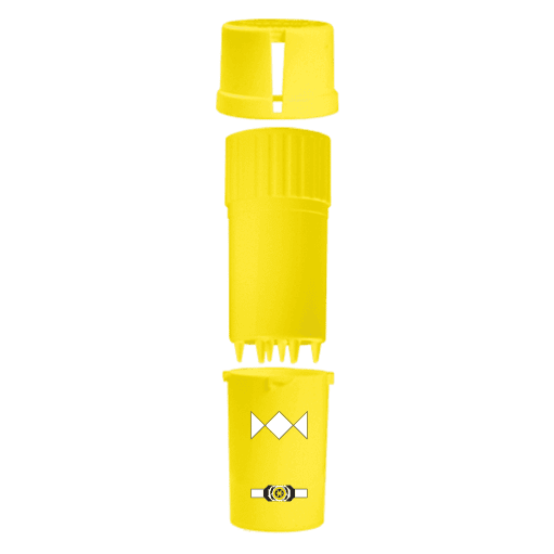 Introducing the Medtainer Storage w/ Grinder "Sabre" PowerTainer - the ultimate blend of functionality and flair! This vibrant yellow storage solution is not just a container; it's a quirky friend that knows how to keep your herbs safe while doubling as a grinder. With a patented design, this container is air-tight, water-tight, and smell-proof, ensuring your goodies stay fresh and discreet.