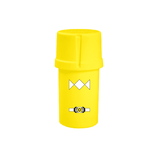 Introducing the Medtainer Storage w/ Grinder "Sabre" PowerTainer - the ultimate blend of functionality and flair! This vibrant yellow storage solution is not just a container; it's a quirky friend that knows how to keep your herbs safe while doubling as a grinder. With a patented design, this container is air-tight, water-tight, and smell-proof, ensuring your goodies stay fresh and discreet.