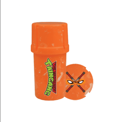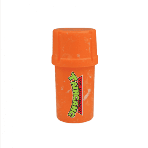 Introducing the Medtainer Storage w/ Grinder "ShellShock Collection" Taingang Mikey - 20 Dram, a remarkable blend of style and functionality. This eye-catching grinder features a vibrant orange design that’s not just for looks; it's designed to elevate the way users store and grind their materials.