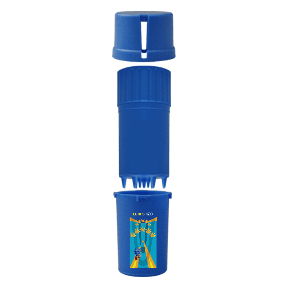 The Medtainer Storage w/ Grinder Speed Demon "Leafs 420" is not just a container—it's the life of the party! This vibrant blue beauty makes storing and grinding as easy as pie. With its patented air-tight, water-tight, and smell-proof design, this clever little gadget is the ultimate blend of style and functionality. Say goodbye to those typical, boring grinders and hello to this must-have accessory!