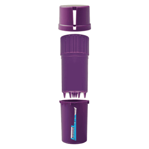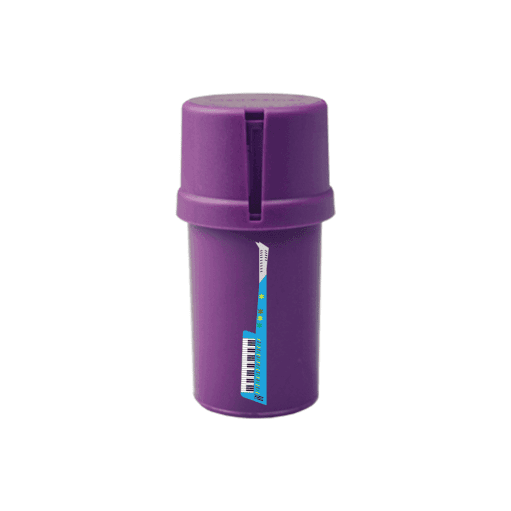 The Medtainer stands at just the right size for convenience, offering 20 drams of storage capacity. Crafted from medical-grade plastic, it's durable and designed to withstand the daily grind. Its vivid purple color and compact design make it a perfect fit for both style and function.