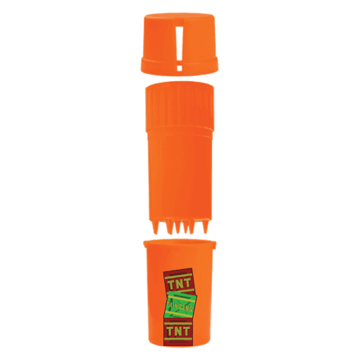 Meet the Medtainer Storage w/ Grinder "Tiki Tokin" - a vibrant orange beauty that combines style and functionality! This is not just any storage container; it's a revolutionary 20 Dram grinder that makes your daily rituals as effortless as a summer breeze.